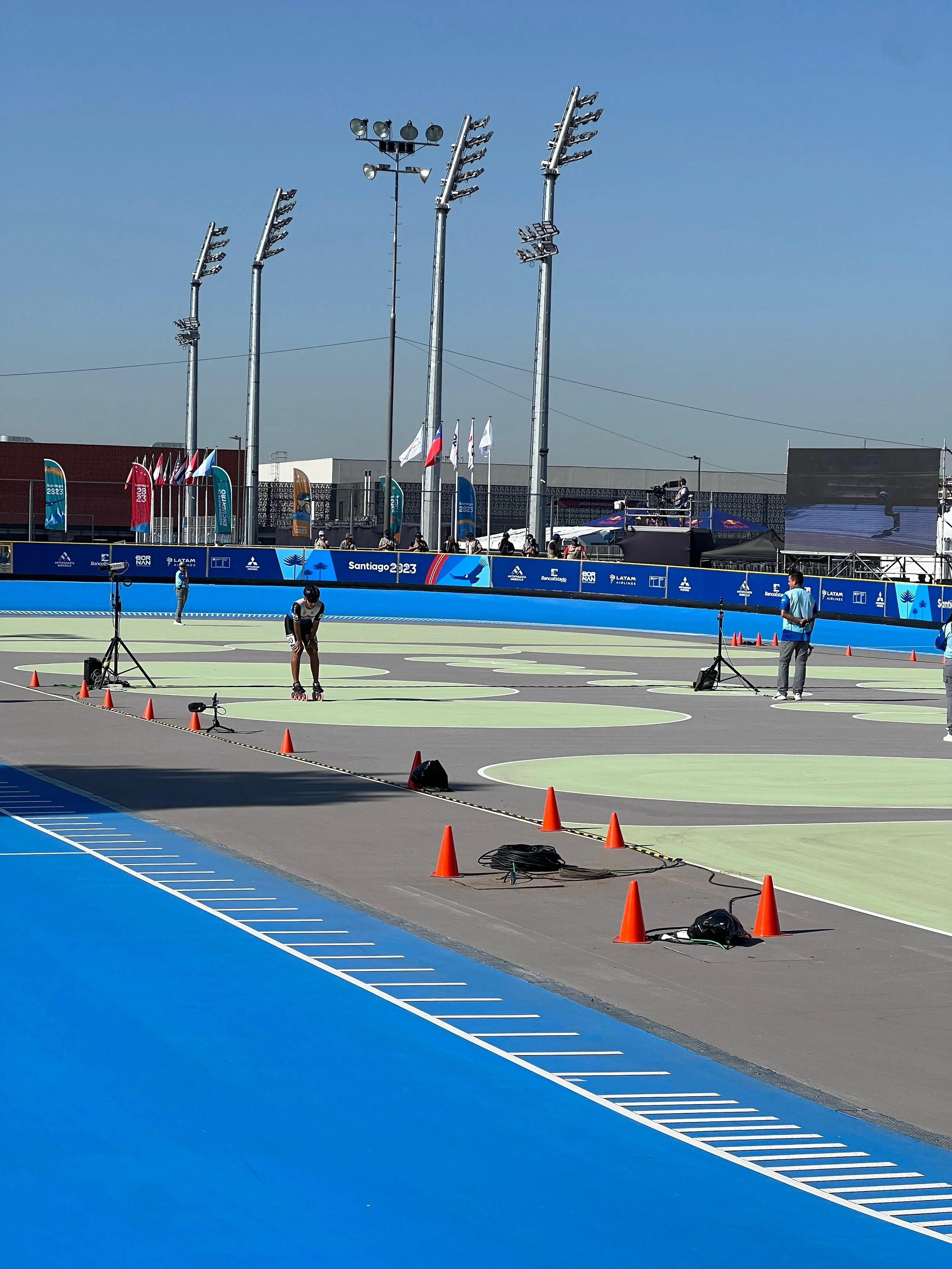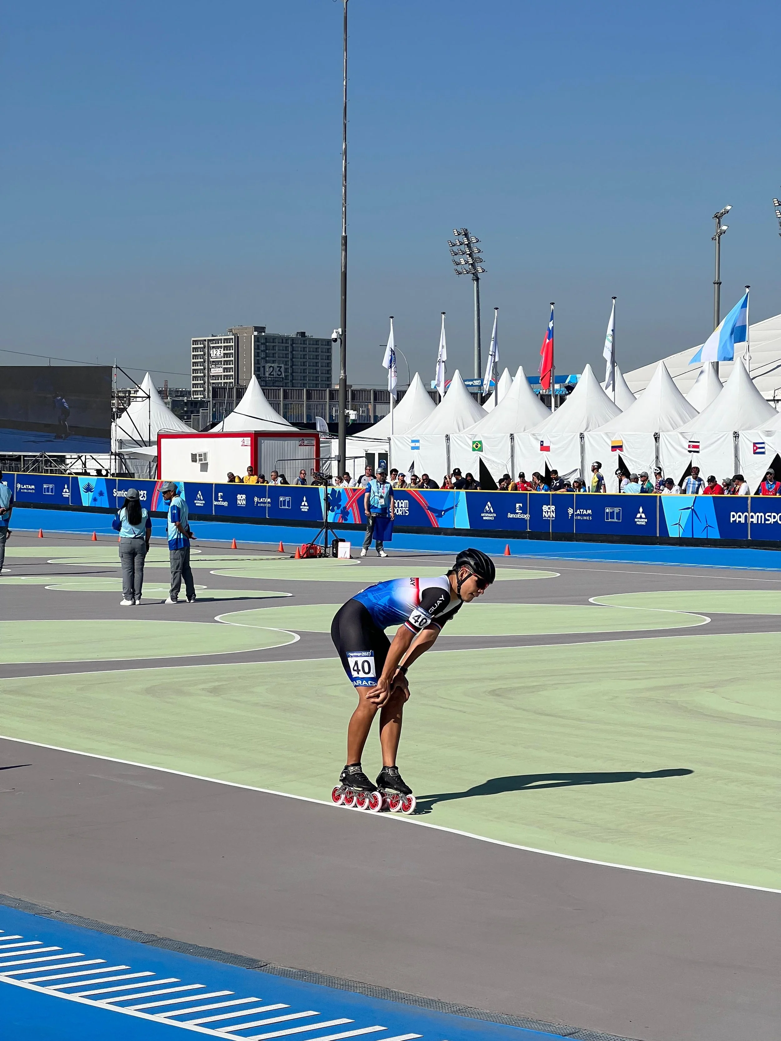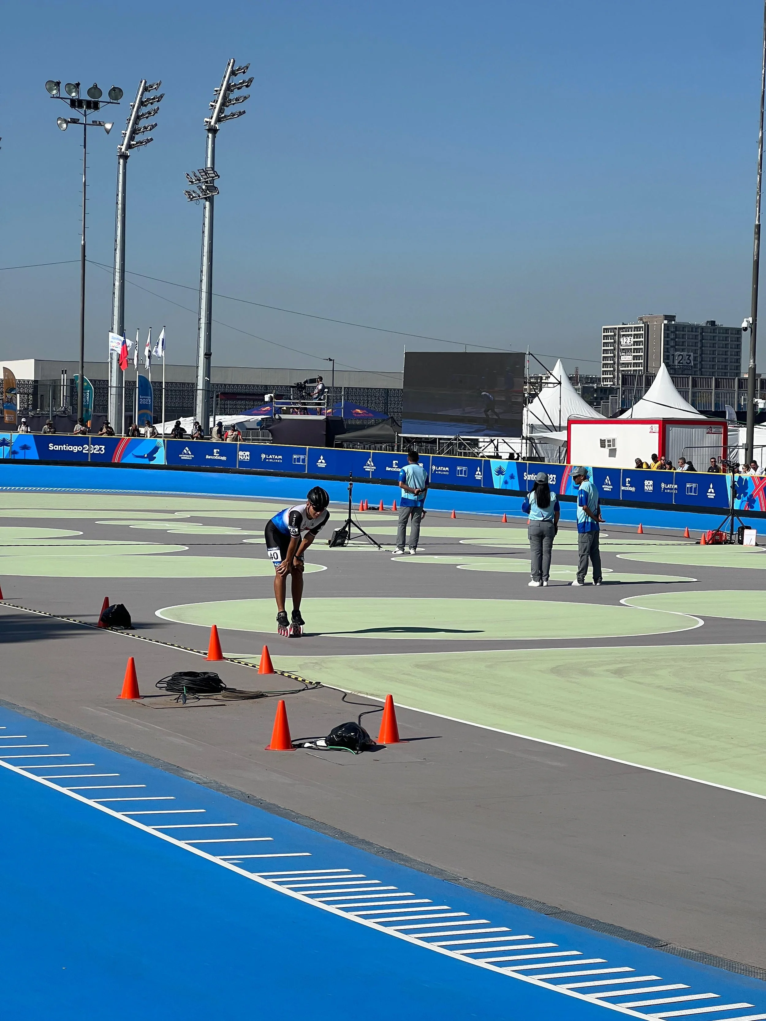 El atleta de patinaje de velocidad tuvo su participación en los Juegos Panamericanos de Santiago 2023 y realizó un tiempo de 18.578 segundos en los 200 metros, donde finalmente culminó en la posición número 11 en la tabla general.